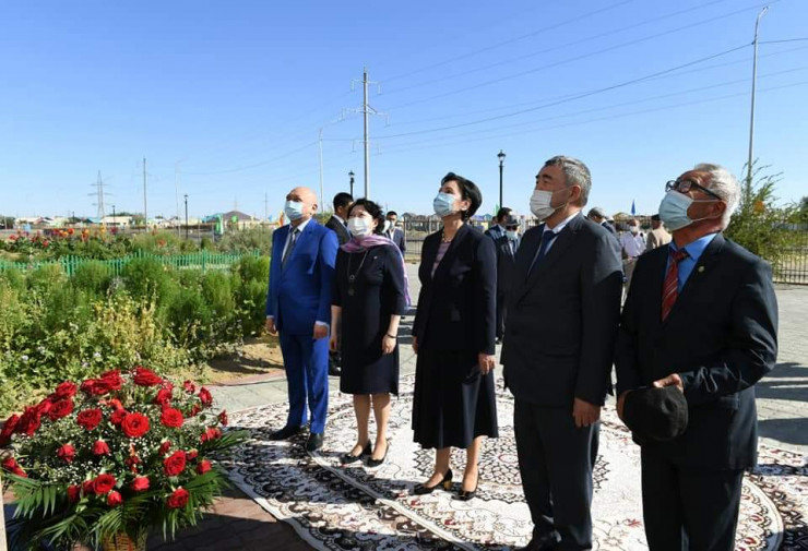 Также Райымкулова вместе с акимом области Гульшарой Абдыкаликовой посетили Аральский район. Здесь чиновники ознакомились с работой школы-гимназии № 262 имени Узакбая Караманова и приняли участие в церемонии открытия его бюста.