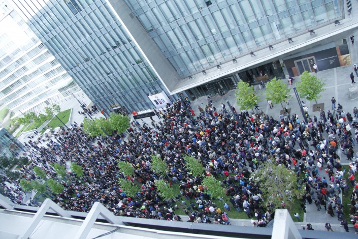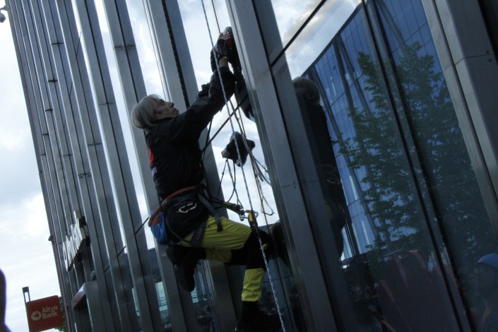 Свое восхождение скалолаз начал в 17.10 по времени Астаны. Несколько раз Робер делал паузы, останавливался на дистанции и делал селфи со зрителями, а также махал и отправлял воздушные поцелуи. Посмотреть его вояж пришли несколько тысяч алматинцев и гостей города. Каждый раз во время селфи они сопровождали его действия аплодисментами и возгласами.