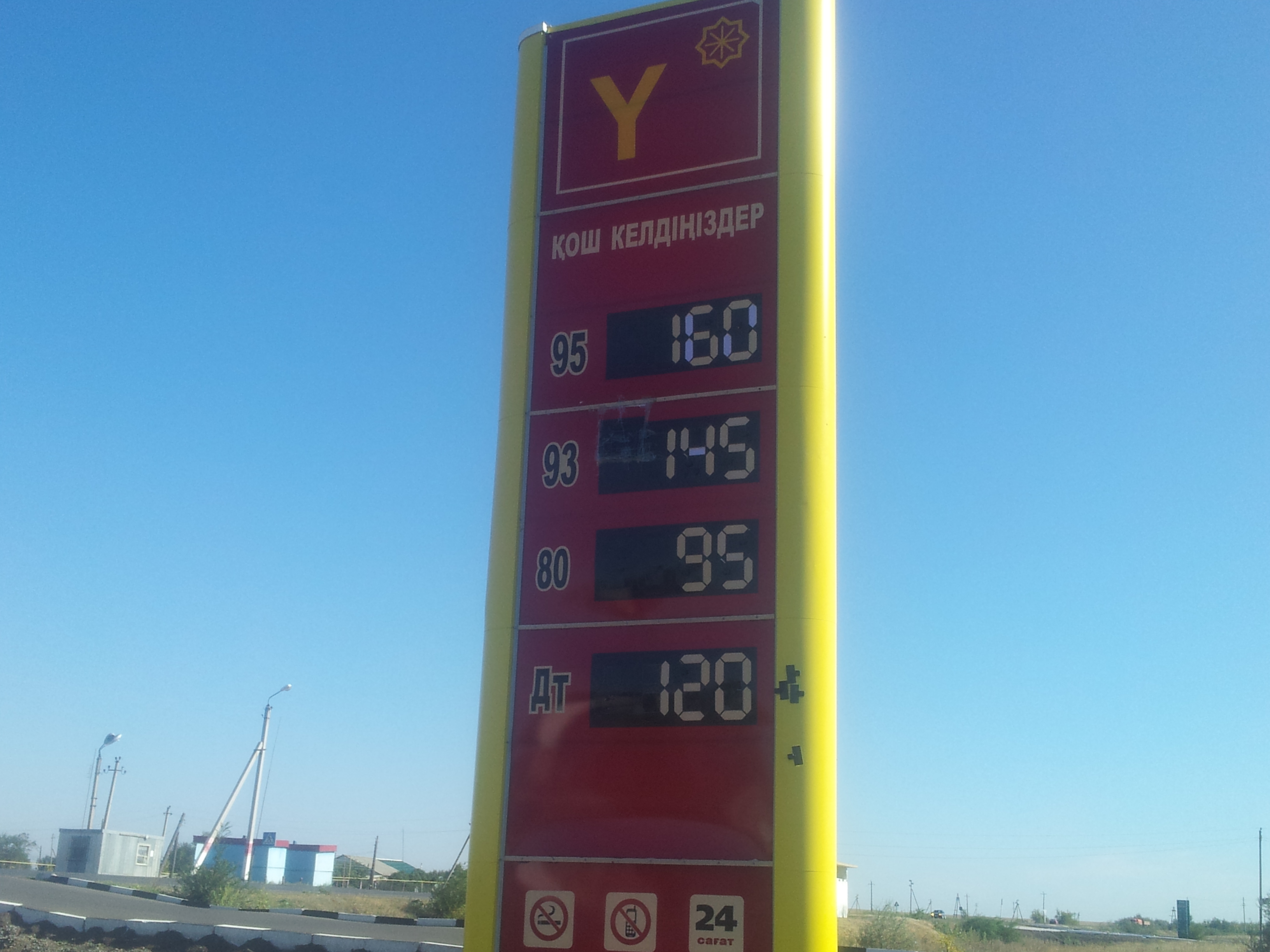 Отметим, на этой же заправке дизтопливо продается за 120 тенге, а АИ-80 - за 95. Это регулируемые марки топлива. Согласно приказу от 21 августа об установлении предельных цен на бензин и другие виды нефтепродуктов дизтопливо должно стоить 115, АИ-92/93 - 128 а АИ-80 - 89 тенге за литр.