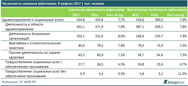Количество сотрудников в системе здравоохранения и соцуслуг выросло по итогам II квартала 2017 года почти на 8 процентов за год.