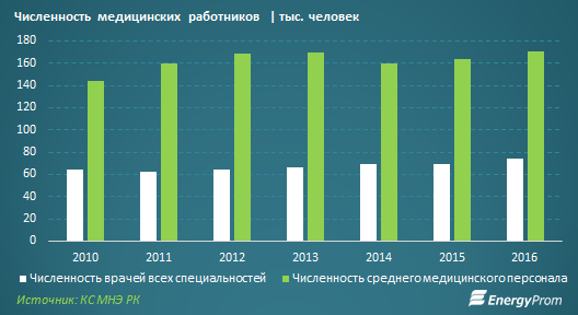 Для сравнения, в 2015-м прирост числа врачей составлял 1,2 процента за год, среднего медперсонала - 2,4 процента.