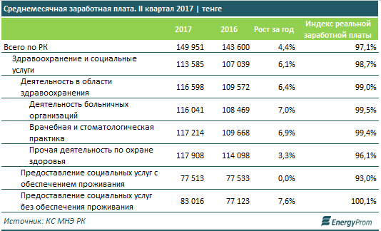 В то же время рост заработных плат в системе здравоохранения не столь высок. Так, по итогам II квартала 2017 года, в целом по сфере охраны здоровья и социальных услуг рост среднемесячной зарплаты составил всего 6,1 процента, при этом индекс реальной зарплаты показал снижение покупательской способности сотрудников отрасли на 1,3 процента.