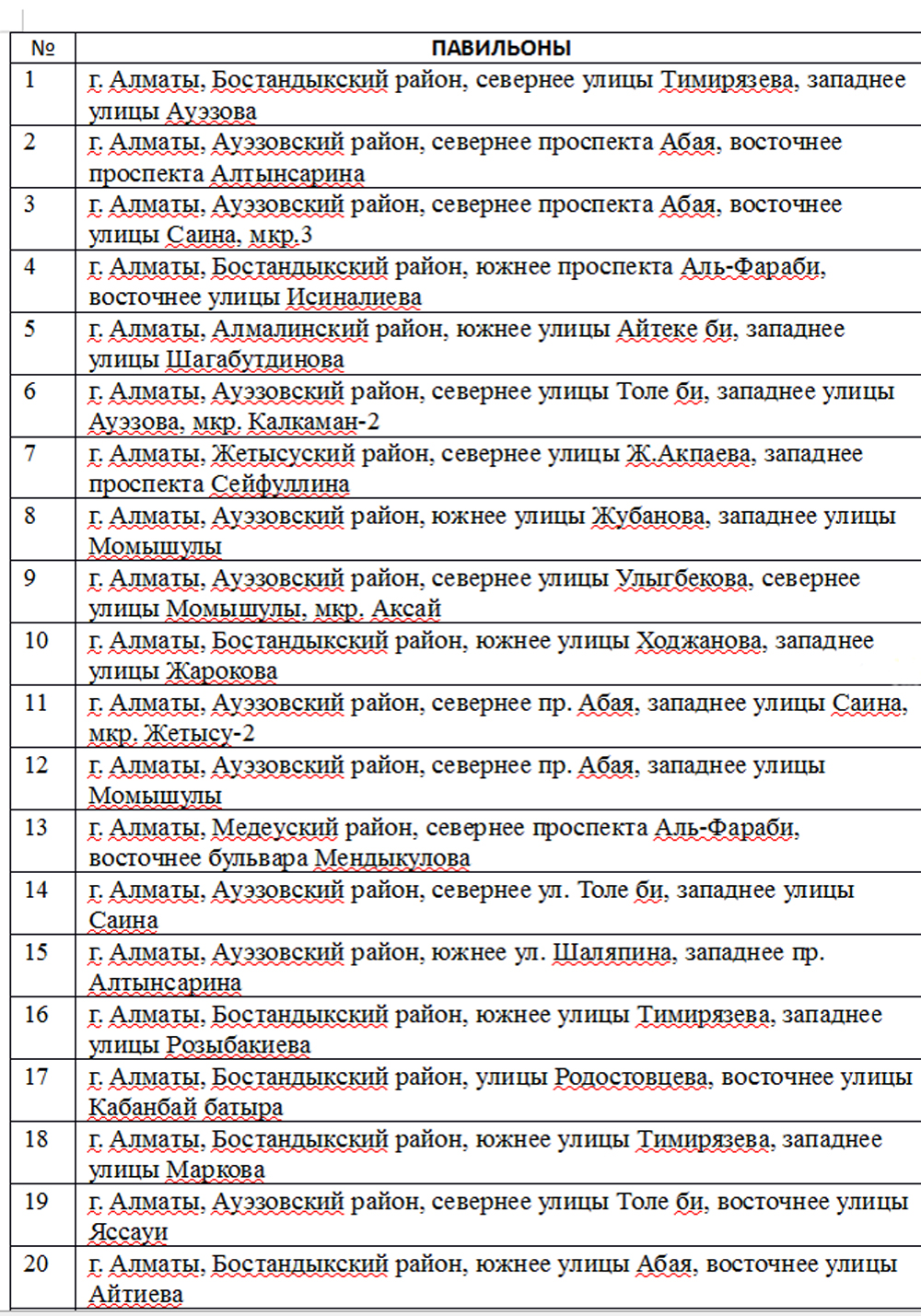 По его словам, предприниматели в павильонах реализуют социально значимые продукты по низким ценам взамен на скидку на аренду торговых площадей. К примеру, точку в 40 квадратных метров они могут снимать всего за 70 тысяч тенге, когда в других местах ларек такой же площади может стоить 200 тысяч тенге. Вместе с вышеназванными продуктами продавцы могут продавать и другие продукты питания.