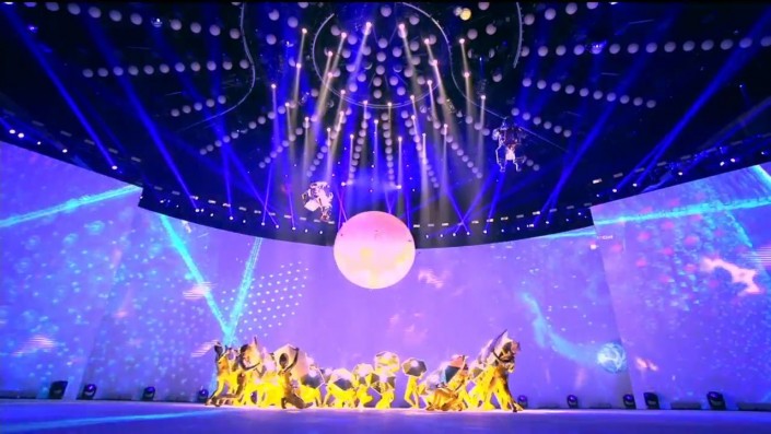 20.43 Начался обратный отчет, затем видео. Сфера пролетает над планетой, люди, роботы, юрты, новые технологии.