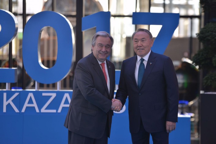 19.48 Президент Кыргызстана и генеральный секретарь ООН в Астане