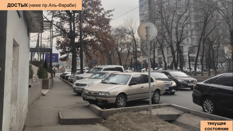 "Проспект Достык до пробивки ВОАД выполнял роль восточной меридианы и служил воротами к горным достопримечательностям Алматы - катку Медео, ГЛК "Шымбулак". Основная характеристика проспекта - это его уклон, в некоторых местах он достигает 3-4 процента. Это сказывается на тротуарах, наклонные поверхности перемежаются со ступеньками и подпорными стенами. Первые этажи зданий, которые заняты коммерцией, вынуждены встраиваться в рельеф, решая перепады высот входными группами, ступеньками и ненормативными пандусами. При этом инклюзивность и доступность для маломобильных граждан не везде можно предусмотреть. Дизайн-код города соблюдается не везде, а чаще всего игнорируется", - отметили в акимате.