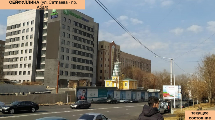 "На перекрестке с проспектом Сейфуллина часто возникают заторы, вызванные загруженностью пересечения и выходом на проспект Аль-Фараби в верхней части города. Также сложности возникают из-за крупных объектов здравоохранения и образования, транспортных и торговых объектов", - говорится в презентации проекта.