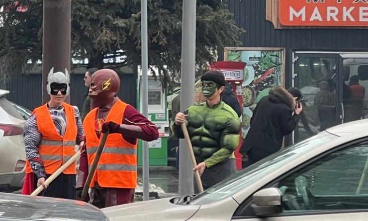 Человек-паук, Супермен и Халк вышли убирать улицы Алматы