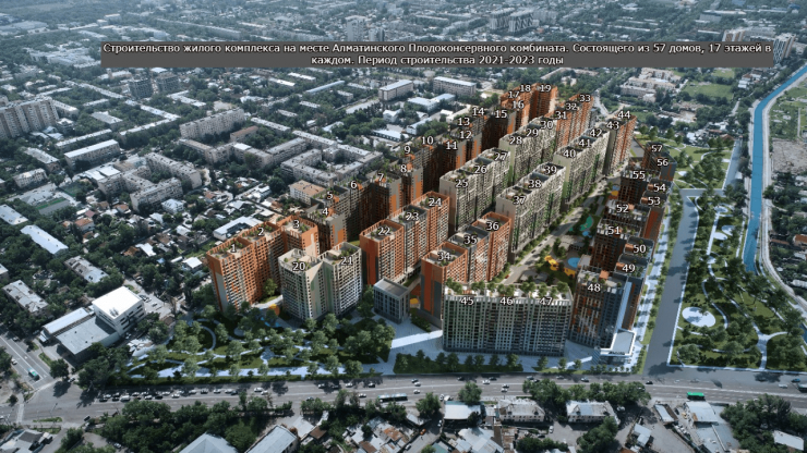 На странице "Спасем Алматы" в Facebook опубликована информация о том, что на месте бывшего плодоконсервного комбината начато строительство жилого комплекса. Отмечается, что здесь появятся целых 57 домов по 17 этажей каждый. По данным автора публикации, общая площадь застройки составляет 13 гектаров.