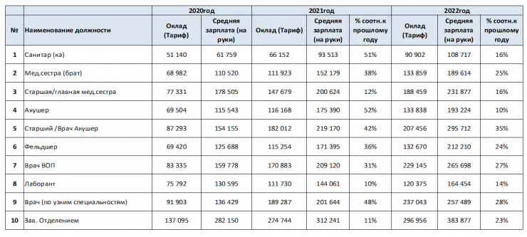 Сравнительная таблица по росту средней зарплаты в Талгарской центральной районной больнице