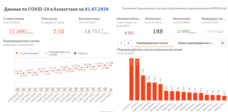 Ранее мы сообщали, что в нескольких городах есть проблемы с тестированием (несколько лабораторий закрылись), поэтому статистика может быть неполной. Кроме того, бессимптомные выявляются лишь среди контактных с ранее заболевшими, так как платное обследование на COVID-19 без наличия симптомов в Казахстане сейчас пройти затруднительно.