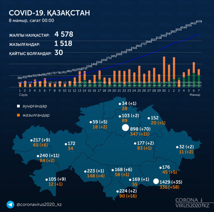 Всего в Карагандинской области выявлены 177 случаев заражения, в том числе три летальных случая, 83 пациента выписаны.