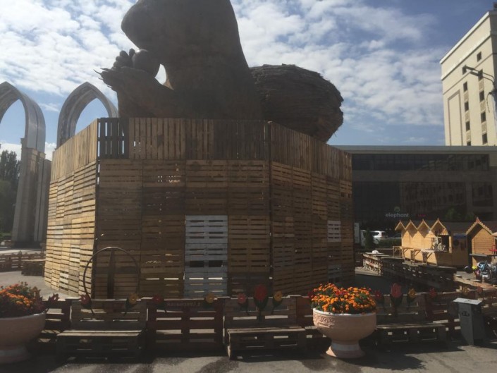 На данный момент работы по обновлению арт-объекта идут полным ходом. Вокруг гигантского грызуна установили каркасные деревянные блоки. Ответственное за преображение Белки креативное агентство Funk собирает деньги и необходимый материал. На счет уже поступило свыше 200 тысяч тенге.