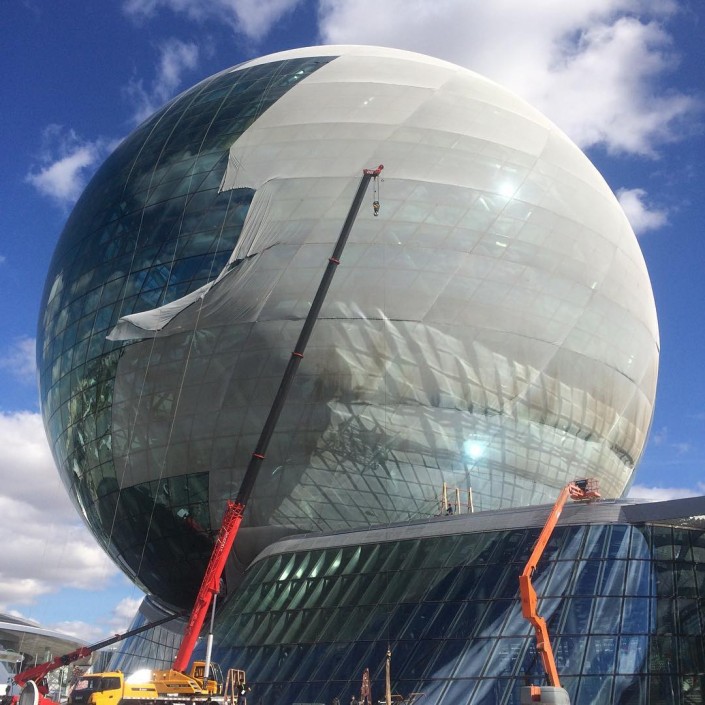 "Проекционное полотно с поверхности сферы снято 17 сентября. Проекционное шоу на сфере "Нур Алем" не планируется к трансляции. Прожекторы на сфере будут продолжать свою работу с освещением по ночам с ноября 2017 года", - сообщается в ответе ведомства на официальный запрос Tengrinews.kz.