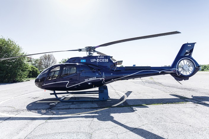 EC 130 - одномоторный легкий вертолет. Создан французской компанией Eurocopter. Эта модель выпускается с 1999 года. Аппарат, который находился на балансе компании Sky Service, был выпущен в 2017 году.