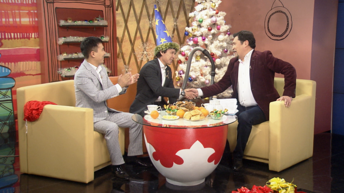 В канун Нового года телеканал покажет праздничный концерт театра сатиры "Шымкент-шоу", который празднует свое десятилетие. Трансляция начнется в 16.00 по столичному времени. В 20.20 начнется концерт памяти Батырхана Шукенова "Батыр Lives", которая продлится вплоть до традиционного поздравления Президента Казахстана Нурсултана Назарбаева. А уже 1 января в 18.40 начнется сольный концерт Кайрата Нуртаса "Мен ғашықпын". Гости вечера - Тимати, Нюша, Индира Елемес, Сергей Лазарев и группа "Рефлекс".