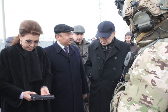 "Как игрушечный", - смеясь сказала Дарига Назарбаева, показывая на одну из штурмовых винтовок в маскировочном окрасе.