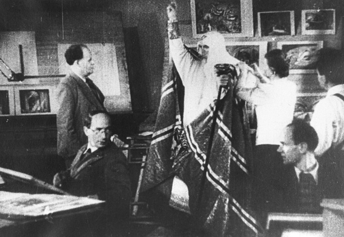 Режиссер Сергей Эйзенштейн во время съемок фильма "Иван Грозный" и артист Николай Черкасов. Алма-Ата 1941 год.