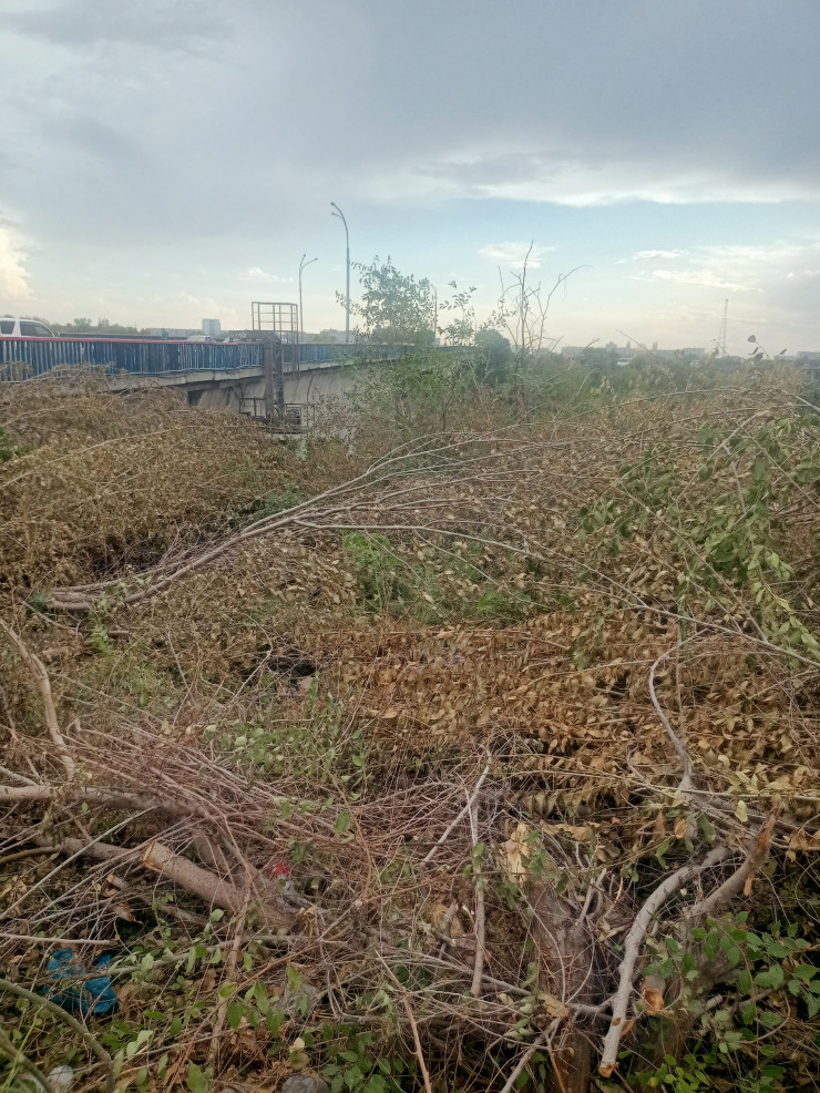 Добавим, что еще строительные работы затронули зону парка на правом берегу города, прилегающему к действующему автогужевому мосту. Там спилили деревья, мешающие стройке.