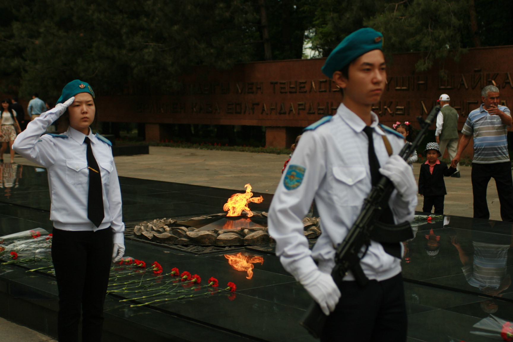 Более тысячи человек собрались в алматинском парке утром 7 мая, чтобы принять участие в праздновании Дня защитника Отечества. Возле мемориала Вечного огоня был развернут большой шатер, где расположились почетные гости события, среди которых присутствовали 200 ветеранов Великой Отечественной войны. Торжественной речью мероприятие открыл аким Алматы Ахметжан Есимов.