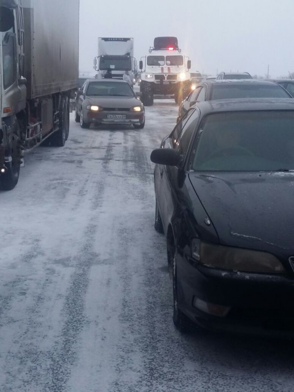 Как описывает происходящее один из водителей, стоящий в районе станции Баймырза, он выехал из Караганды в 6.00 утра и успел проехать только 20 километров. Потом автомобиль попал в пробку. Из-за плохой видимости водитель не смог оценить визуально, насколько растянулся затор.