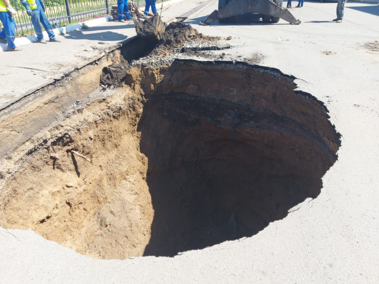 В ТОО "Батыс Су Арнасы" сообщили, что провал образовался в результате ливневого дождя, прошедшего в ночь с 3 на 4 июня.