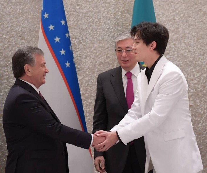 Певец Димаш Кудайберген встретился в Ташкенте с Президентом Казахстана Касым-Жомартом Токаевым и Президентом Узбекистана Шавкатом Мирзиеевым. Совместные фото с исполнителем вечером 16 апреля опубликовал на своей странице в Instagram казахстанский лидер.