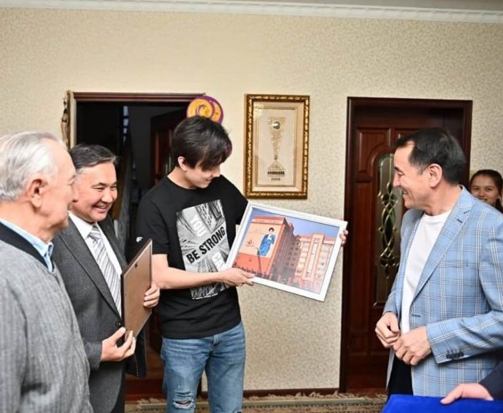 Заместитель акима Актюбинской области Марат Токжанов и аким Актобе Ильяс Испанов пришли поздравить Димаша с днем рождения