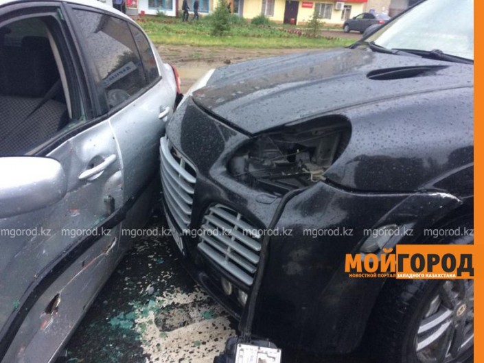 Авария произошла 16 июля на улице Жангир хана. По словам очевидцев, автомобиль Porchse Cayenne врезался в Renault  и Toyota.