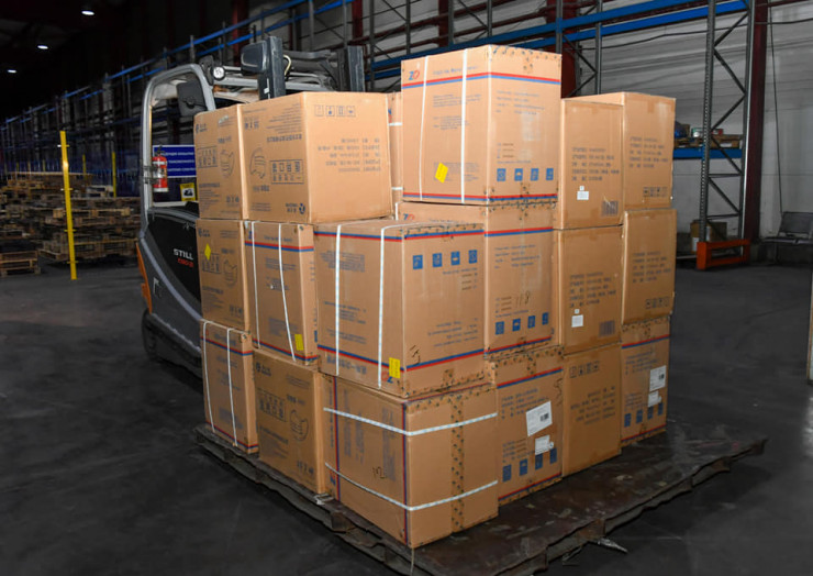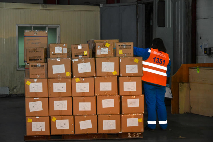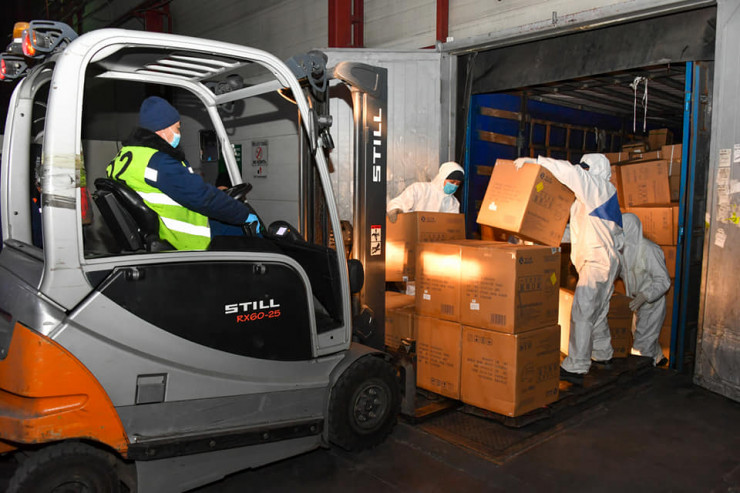 Груз весом более 4,5 тонны включает в себя 500 тысяч медицинских масок, 5 тысяч защитных костюмов, 50 тысяч медицинских перчаток, а также бесконтактные термометры.