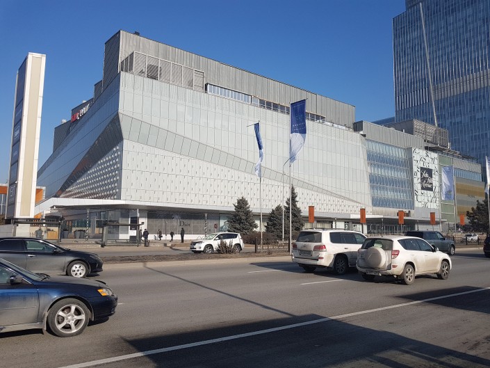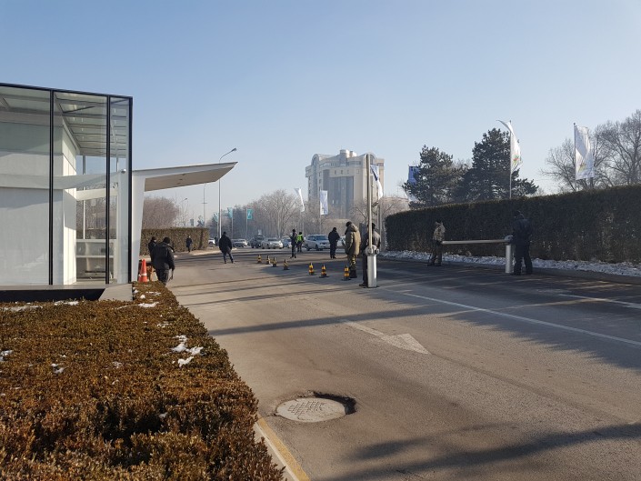 По проспекту Аль-Фараби, где расположен отель, наблюдается большое количество полицейских.