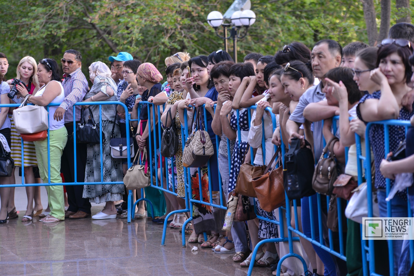 Родители, родственники, друзья терпеливо ждут выпускников у ограждений. Возле здания установлены мониторы, на кадрах которых в режиме онлайн выводится картинка из аудиторий, где выпускники сдают ЕНТ-2015.