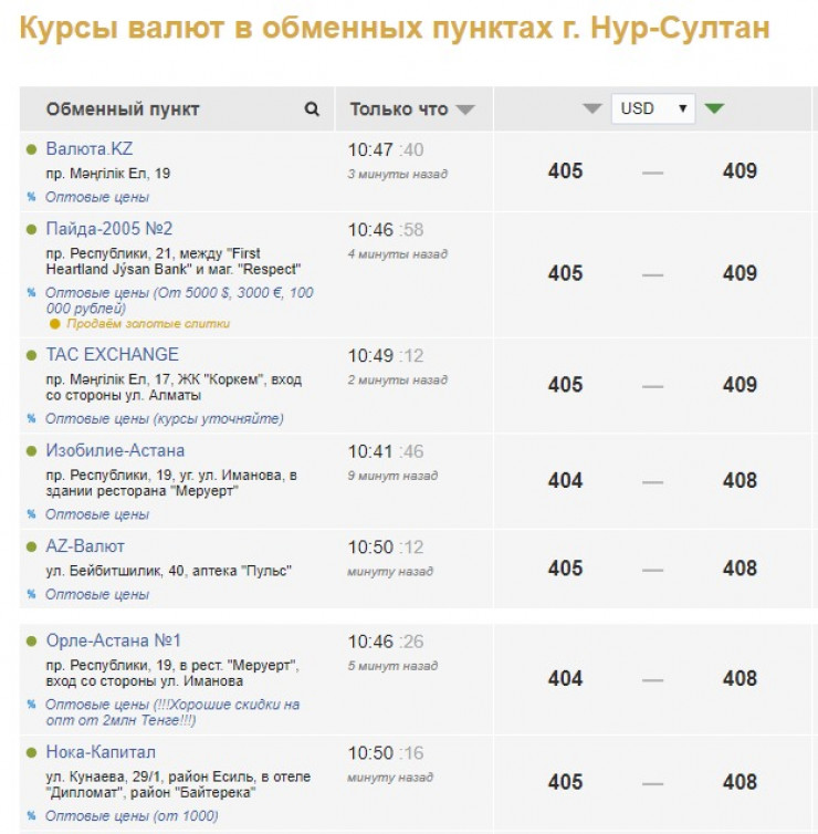 В целом курс в обменниках Нур-Султана и Алматы установился в пределах 407-409 тенге. При этом многие обменные пункты закрыли продажи американской валюты.