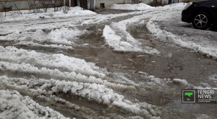 Из-за резкого повышения температуры в Уральске началось активное таяние снега. Вторые сутки идет дождь. Огромные лужи мешают движению автотранспорта и пешеходам даже на центральных улицах. Что касается второстепенных улочек и районов, отдаленных от центра города, там в снежной каше застревают даже джипы. Ситуацию усугубляет отвратительное качество уральских дорог. Огромные рытвины на центральных улицах, открывшиеся из-под снега, сковывают движение, сужая в некоторых местах проезжую часть до одного ряда.