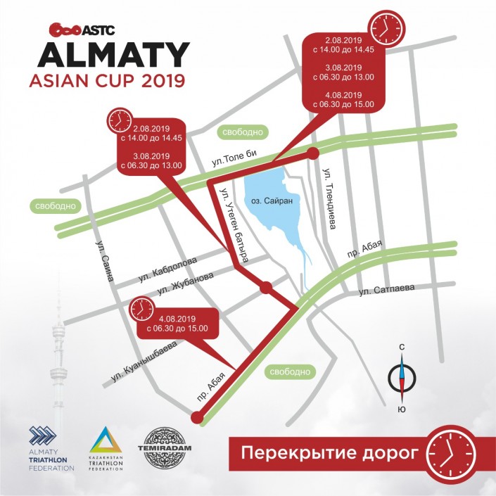В Алматы в связи с проведением Кубка Азии по триатлону возле озера Сайран перекроют автомобильные дороги, передает Тengrinews.kz со ссылкой на Almaty Triathlon Federation.