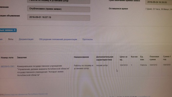 Управление делами акима разместило еще лоты и о пошиве штор за 1,8 миллиона тенге и об изготовлении водопада за 1,6 миллиона тенге. В госоргане обещали дать пояснение по этим лотам позднее.