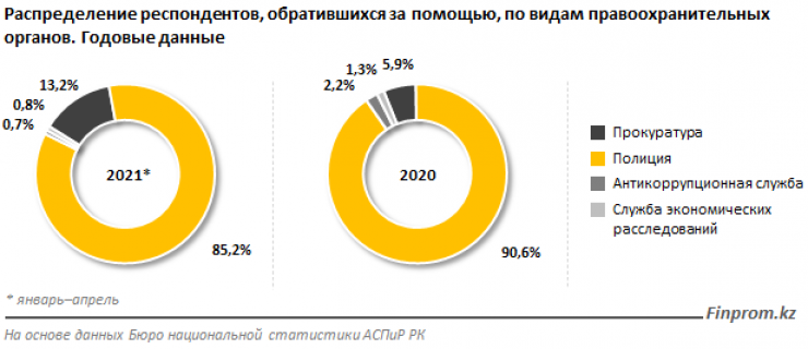 Большинство опрошенных обращались за помощью к органам полиции - 85,2 процента, при этом в 2020 году их доля составляла 90,6 процента.