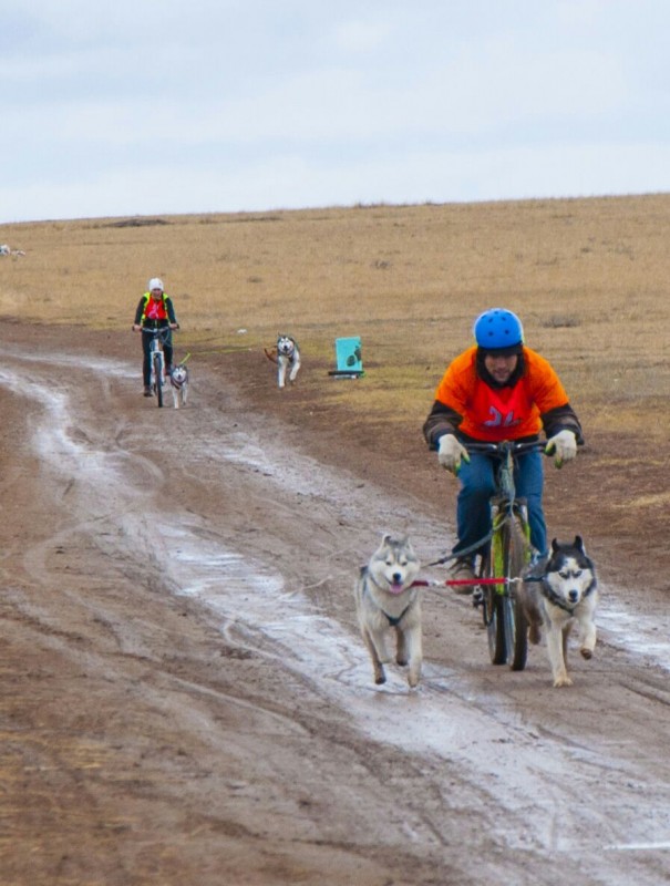 Очень зрелищными и захватывающими получились гонки в дисциплине байкджоринг - велосипед, запряженный одной или парой собак, когда спортсмены обгоняли друг друга изо всех сил, невзирая на грязь, летящую в лицо из-под колес и лап собак.