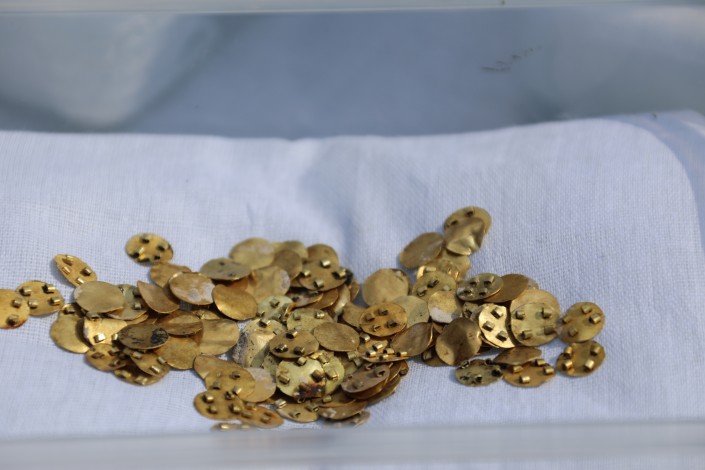 В течение месяца выдающийся археолог Зейнолла Самашев с группой исследователей изучал Тарбагатайский массив. Здесь было обнаружено 200 курганов. В процессе раскопок захоронения под названием "Елеке-2" было найдено более 3 тысяч золотых изделий. Эти находки датируются VIII-VII веками до нашей эры. Среди них есть уникальные вещи, которых больше нет ни в одном могильнике. Например, женские серьги-колокольчики, пластины с четырьмя заклепками, женское ожерелье с драгоценными камнями.