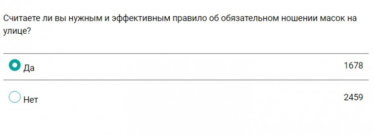 Что касается правила об обязательном ношении масок на улице, то здесь мнения разделились практически поровну. И все-таки вариант ответа о том, что данная мера неэффективна, набрал на восемь процентов больше голосов.