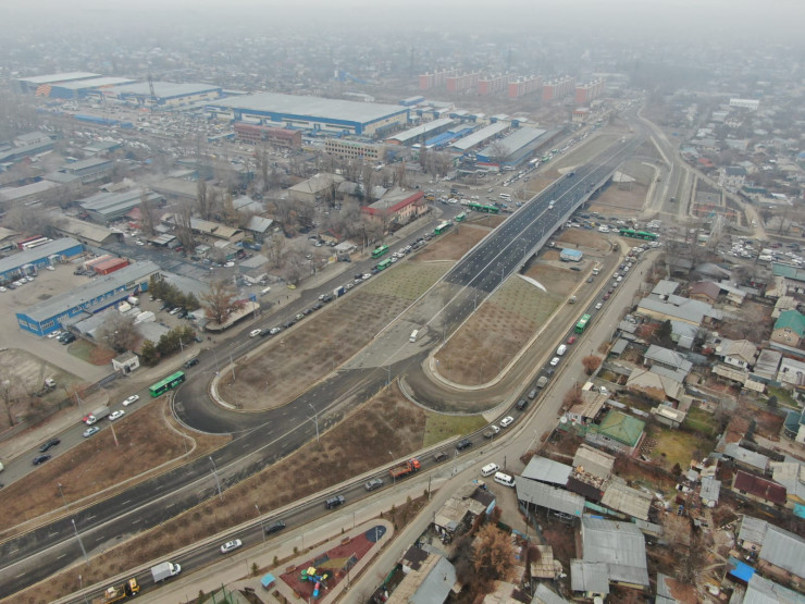 Протяженность эстакады через Рыскулова составляет 186 метров. Ее строительство затягивалось из-за судебных тяжб с владельцами строений, находившихся в зоне строительства.