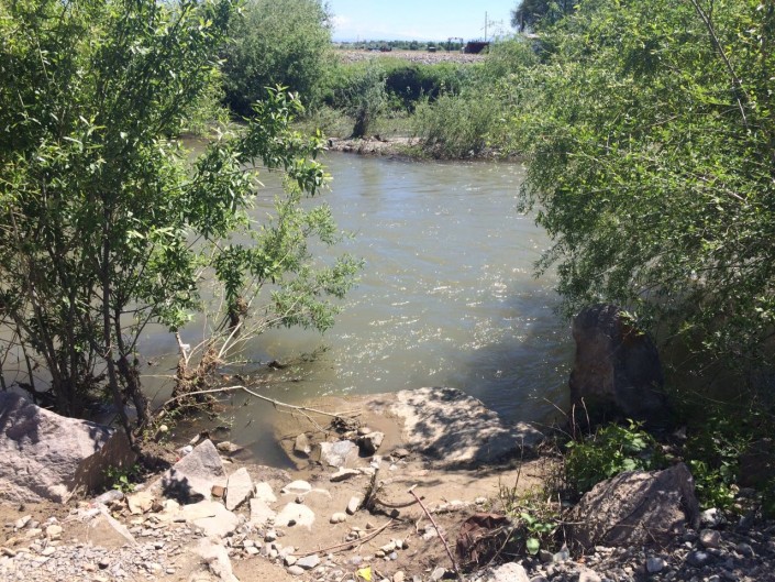 Родители предполагают что с этого места девочка сорвалась. Здесь сильное течение реки Балыкты.