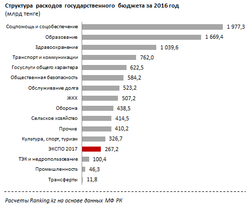 В структуре расходов бюджета 2016 года выставка находится на 13-м месте. Затраты на нее соответствуют 13 процентам суммы на соцпомощь (первое место) или шести процентам трех главных программ страны, включая образование и здравоохранение.
