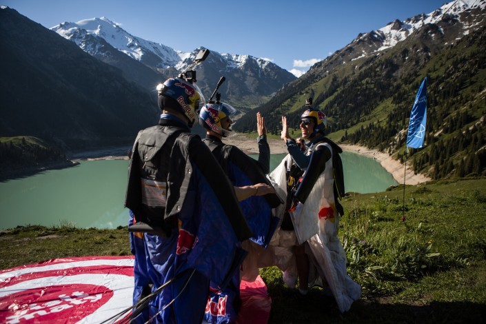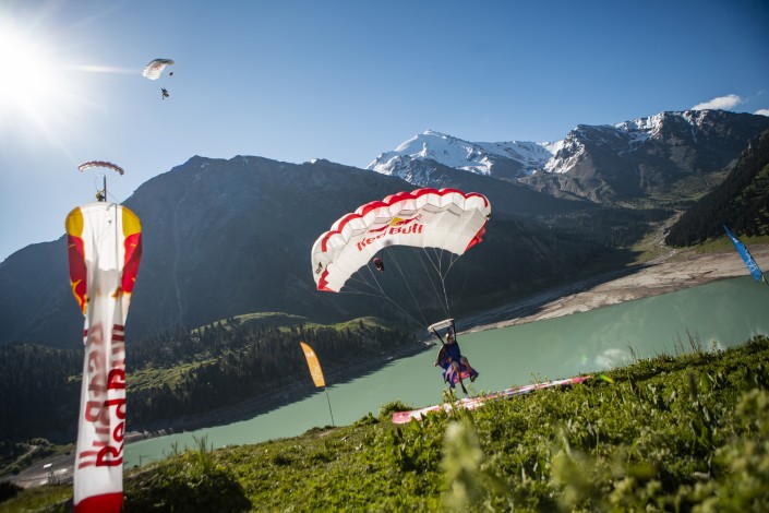 Полеты проходили 18 и 20 июня по согласованию со всеми ответственными службами города. Самолет Ан-2 доставил атлетов в назначенную точку выброса на высоте около 4 000 метров, которая территориально располагалась над ущельем Бутаковка. Воплотить в реальность этот уникальный прыжок и решить все организационные вопросы команде Red Bull Skydive помогли компания VisitAlmaty, акимат Алматы и Управление туризма города.