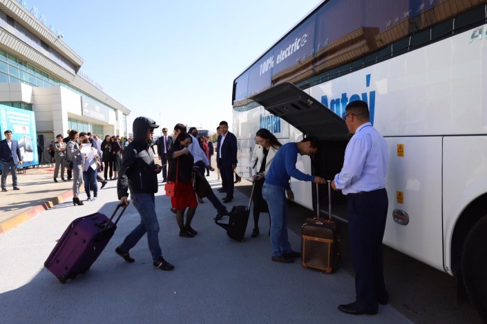 "Сегодня мы запускаем новый маршрут: международный аэропорт - Актау. По моему поручению акиматом Мангистауской области при участии АО "СПК "Каспий" для обслуживания маршрута предоставлены электрические автобусы отечественного производства. Главная особенность автотранспорта в том, что он работает исключительно на электричестве, без вредных выбросов в атмосферу, что соответствует внедрению "зеленых технологий". В обслуживании автобусы являются экономичными: расход топлива по сравнению с автобусами на дизельном топливе меньше в 4 раза, на газе - в 3 раза. За счет этого электроавтобусы окупаются в течение 3-4 лет. Производитель ТОО "Сарыаркаавтопром" дает гарантию на автобусы на 2 года, что обеспечит надежность при эксплуатации", - сказал глава региона Ералы Тугжанов.