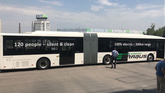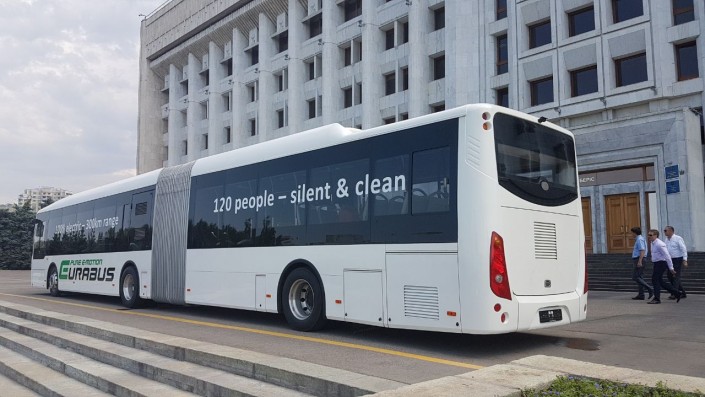 Электробус II поколения будет возить алматинцев и гостей города в первое время бесплатно, передает корреспондент Tengrinews.kz. В Алматы презентовали 18-метровый электробус, который не имеет аналогов в мире. Он разработан автоконцерном Eurabus в Германии. Всего выпущено шесть таких автобусов и шестой привезли в южную столицу.