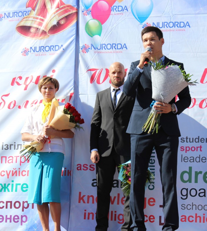 Участники Олимпиады в Рио Данияр Елеусинов, Василий Левит и Гюзель Манюрова поздравили столичных школьников, сообщает Tengrinews.kz со ссылкой на фонд KATEV.