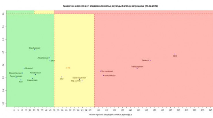 Согласно матрице оценки эпидемиологической ситуации на 17 февраля, в "зеленую" зону перешли Алматинская и Восточно-Казахстанская области.