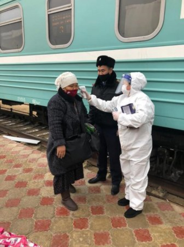Приезжих встречали на станции "Болашак", на казахстанско-туркменской границе. После проверки результатов ПЦР-тестов и всех необходимых документов пассажиры сели на специальный поезд, который прибыл на станцию Жанаозен, а затем на станцию Мангистау.