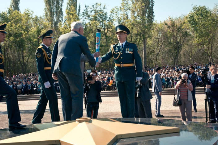 В Таразе состоялась церемония переноса Вечного огня, передает корреспондент Tengrinews.kz.